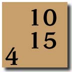 If you imagine the 10 and 16 placed on the centerline of a 2″ X 2″ square, the 0 is offset so your left thumb covers the number. As you go through the stack, recite “sixteen versus 10, stand at zero” (or higher). For a hand of 15 vs. 10, a card will look like this